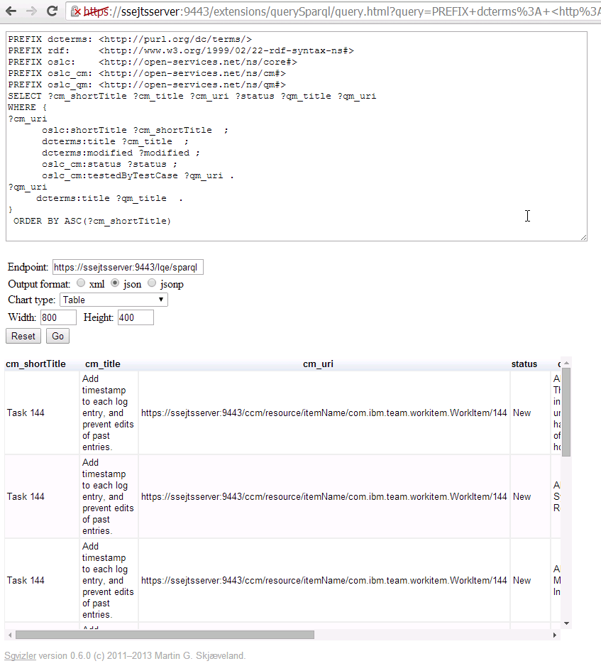 After that step, start your favorit Webbrowser and use the URL:  https://clmserver:9443/extensions/querySparql/query.html