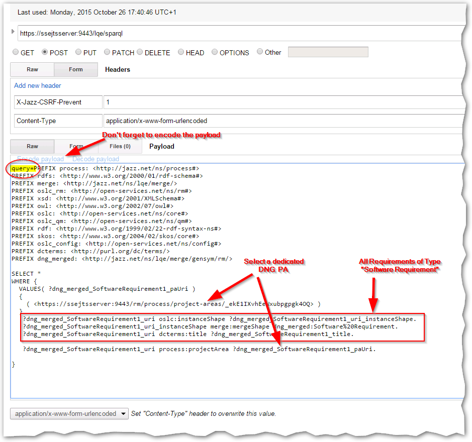 Lets refresh our skills with a basic example of a SPARQL Query “Get all Software Requirements in a dedicated DNG Project Area”